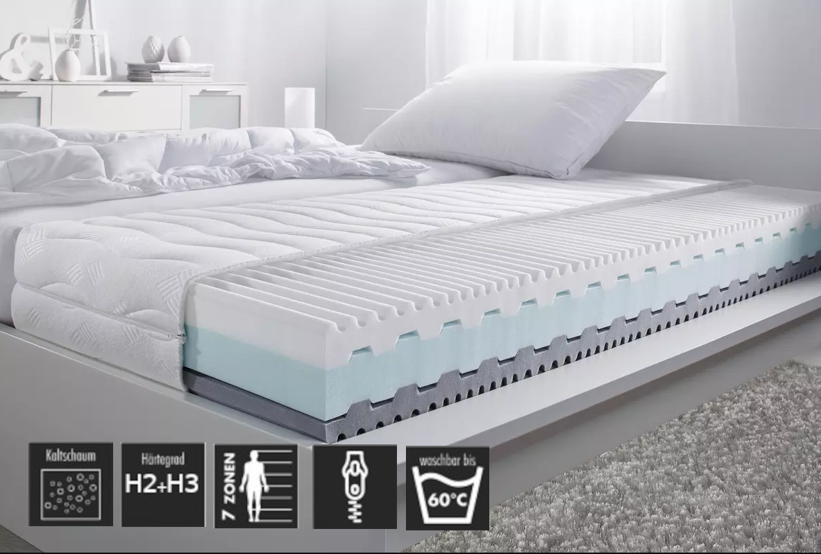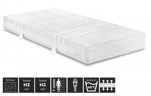 Die Komfortschaumatratze KomfortSupport 21 ist in zwei verschiedenen Härtegraden erhältlich, H2 weich oder H3 mittel. Der weiche Bezug aus 100 % Polyester mit umlaufenden Klimaband, ist abnehmbar und kann bei 60°C gewaschen werden.